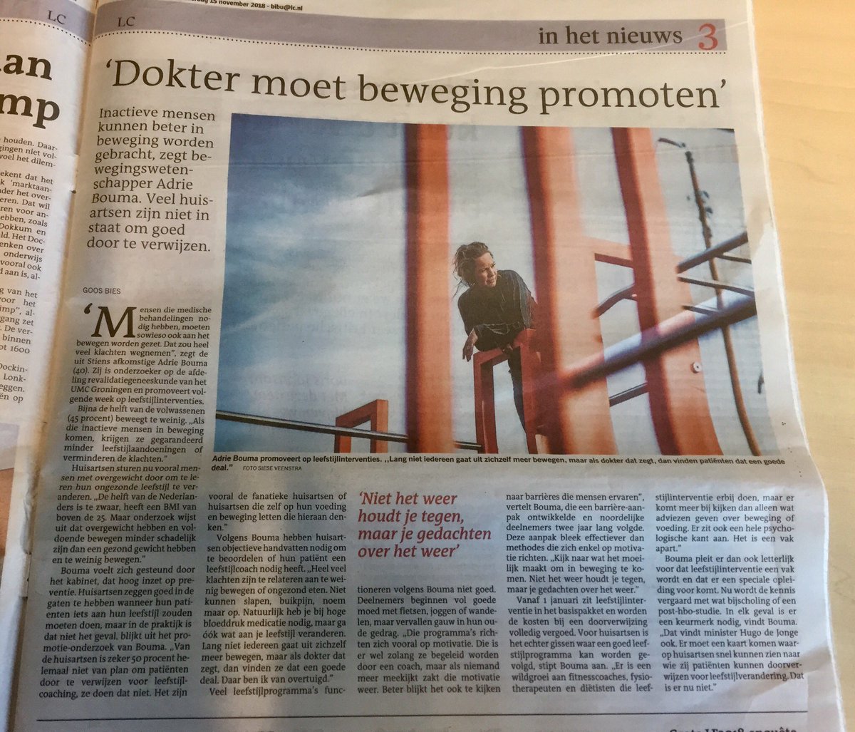 Volgens een recent artikel in de Leeuwarder Courant is het ‘voor huisartsen gissen naar goede programma’s, omdat er inmiddels een wildgroei zou zijn van leefstijlcoaches, fysiotherapeuten en diëtisten die leefstijlinterventie erbij doen’. Aan het woord is wetenschapper Adrie Bouma (Universitair Medisch Centrum Groningen, UMCG), die een proefschrift over dit onderwerp schreef, dat zij vandaag verdedigde.